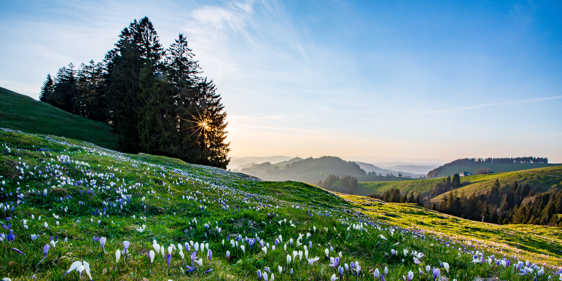 A pastoral Swiss landscape with rolling hills and blooming flowe - Eggiwil - Switzerland