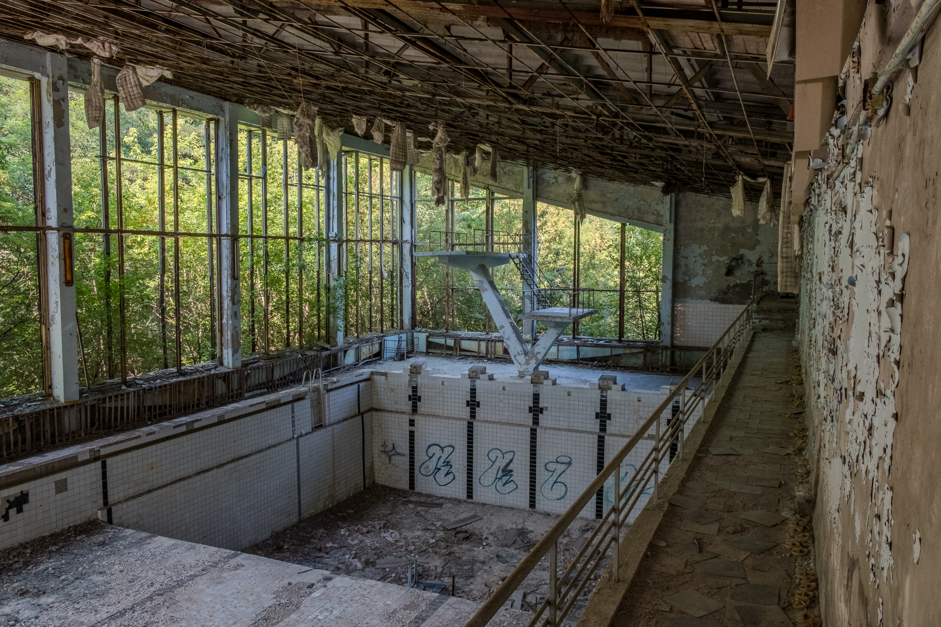 Abandoned indoor swimming pool shrouded in decay - Prypjat - Ukraine