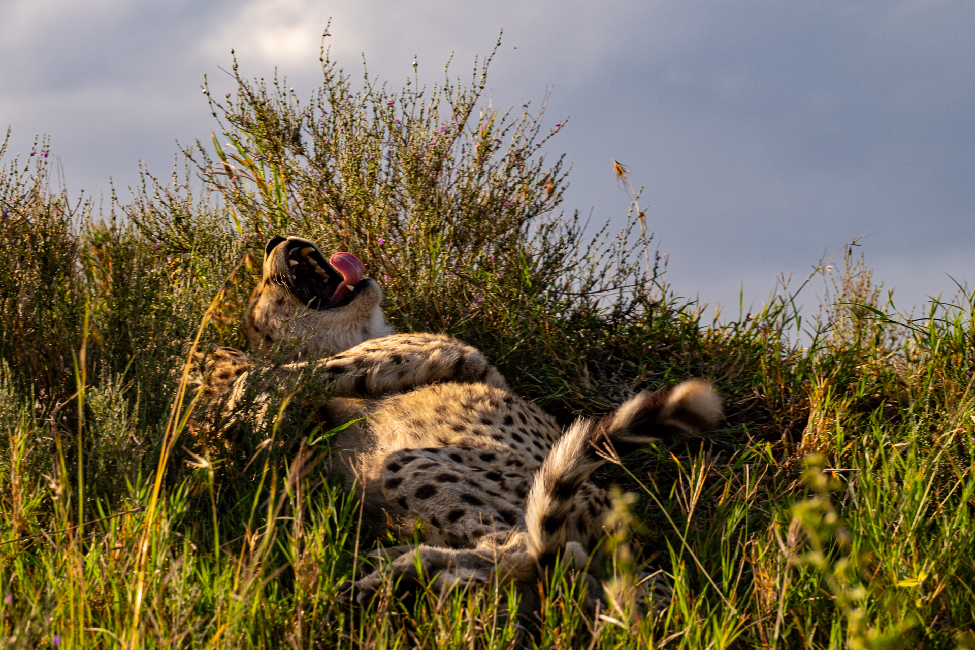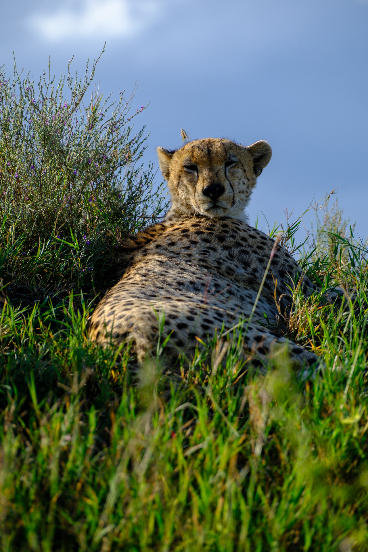 Cheetah lounging in a field of tall grass - United Republic of Tanzania