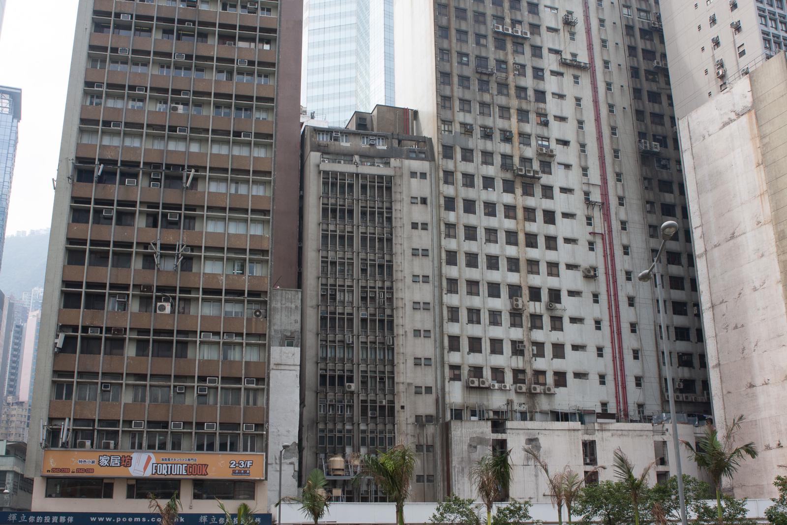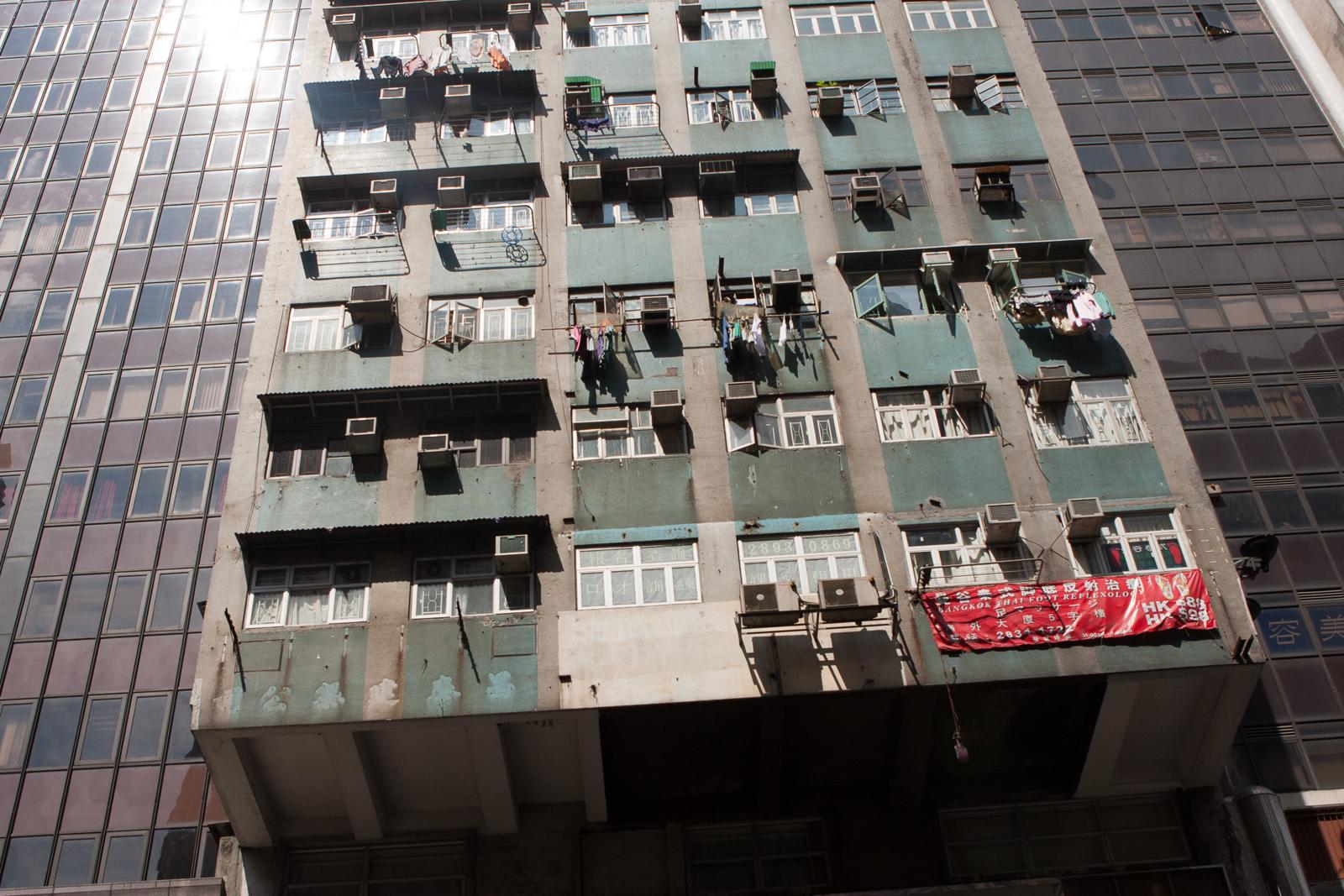Old Hong Kong Apartment Block Between Glass Office Towers (Wan Chai/Causeway Bay) Hong Kong, China