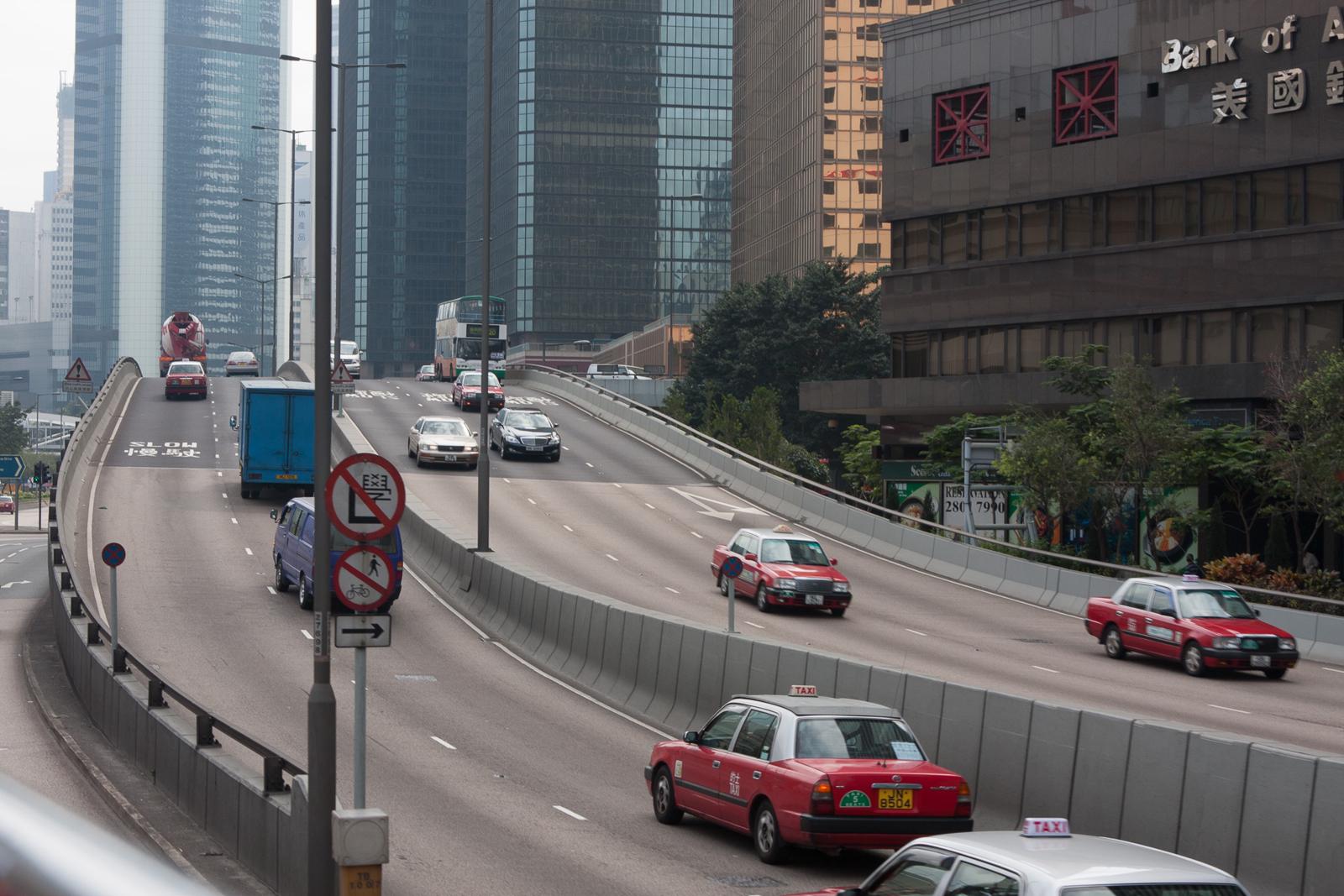 Traffic on a Hong Kong flyover in Admiralty Hong Kong, China