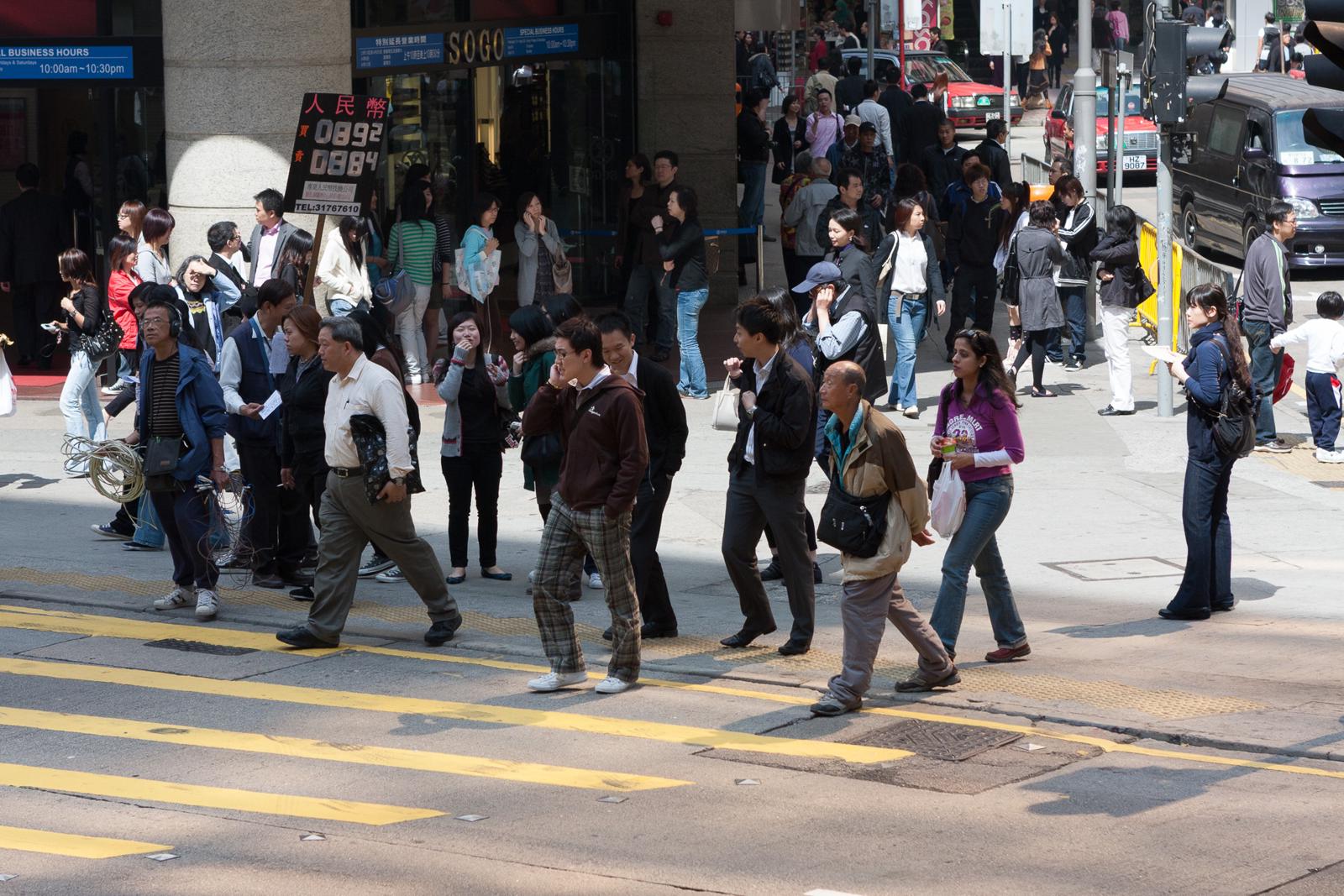 Busy street crossing on Johnston Road, Wan Chai, Hong Kong (2009) Hong Kong, China