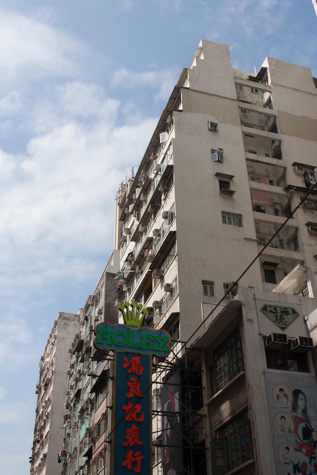 Rolex sign below high-rise apartments in Kowloon, Hong Kong (Feb 2009) Hong Kong, China