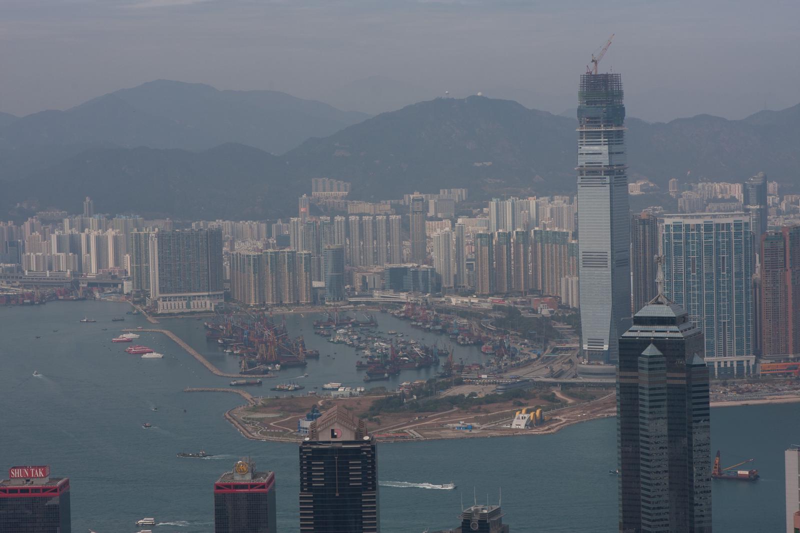 Hong Kong skyline with ICC under construction, February 2009 Hong Kong, China