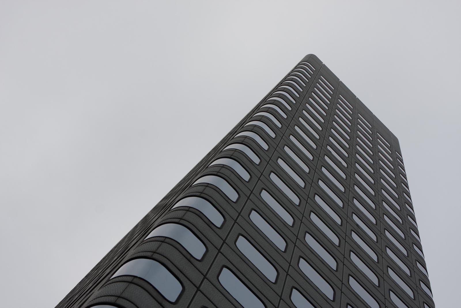 Looking up at a modern high-rise in Wan Chai, Hong Kong Hong Kong, China