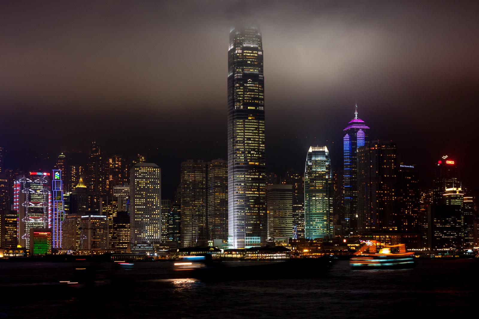 Foggy Night Skyline of Hong Kong Island (Two IFC) Hong Kong, China