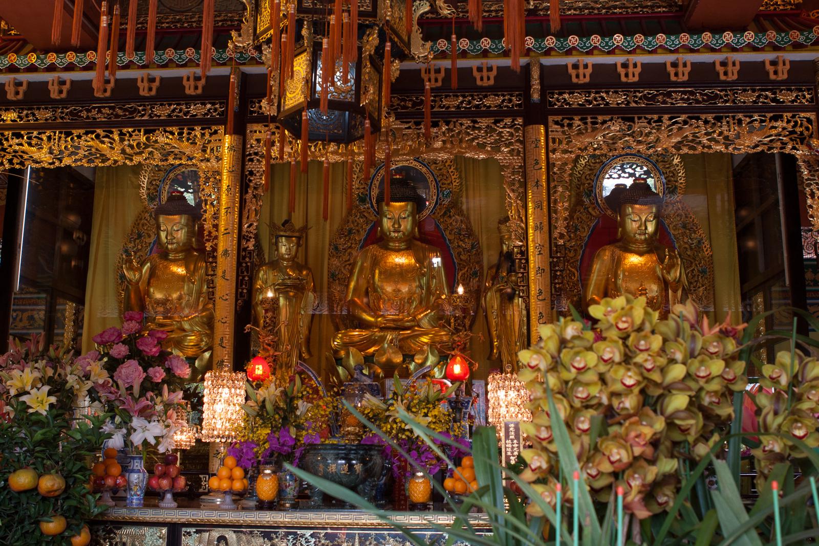 Golden Buddha altar inside Po Lin Monastery, Lantau Island (Hong Kong) Hong Kong, China