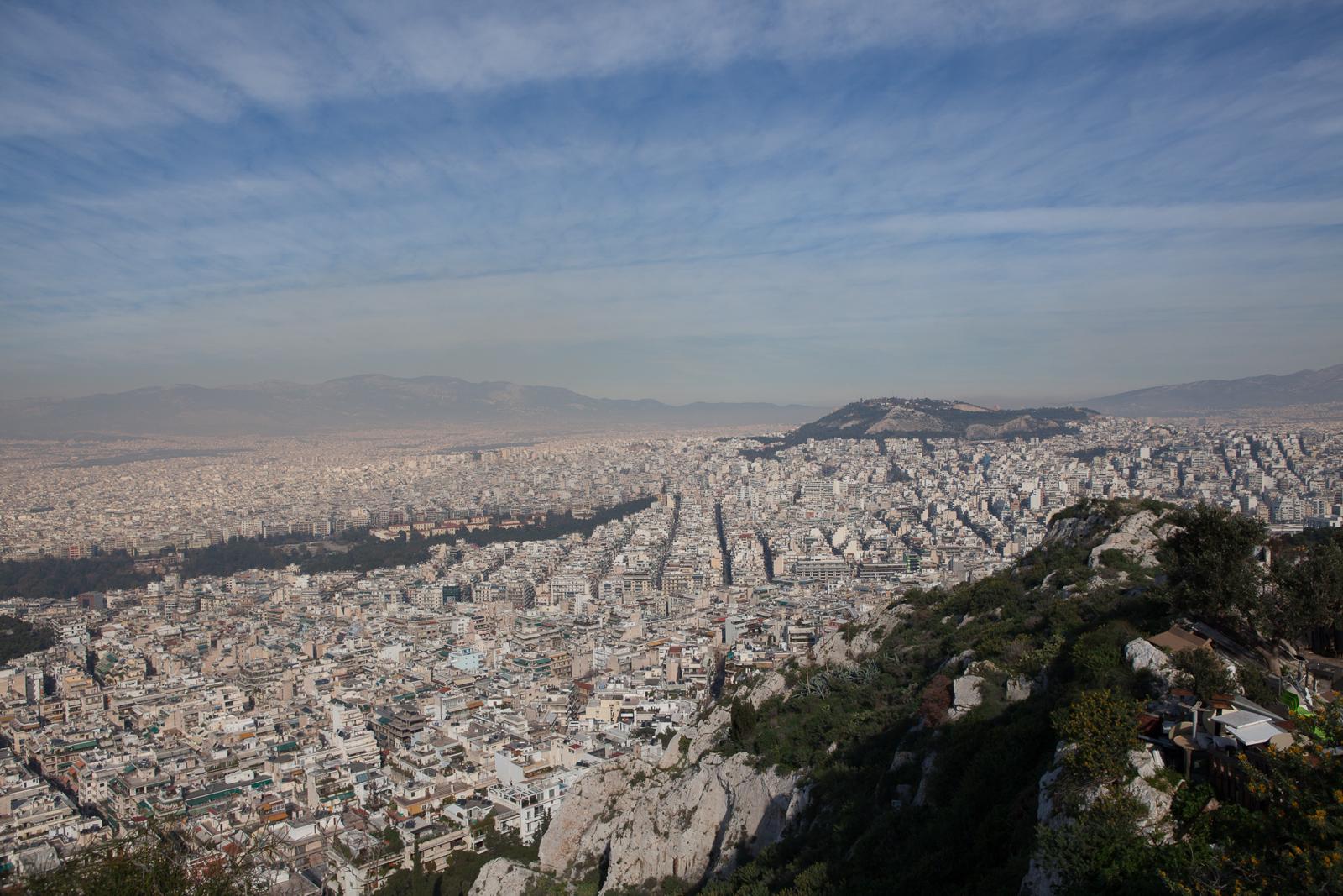 Panoramic cityscape of Athens from a hillside Athens, Greece