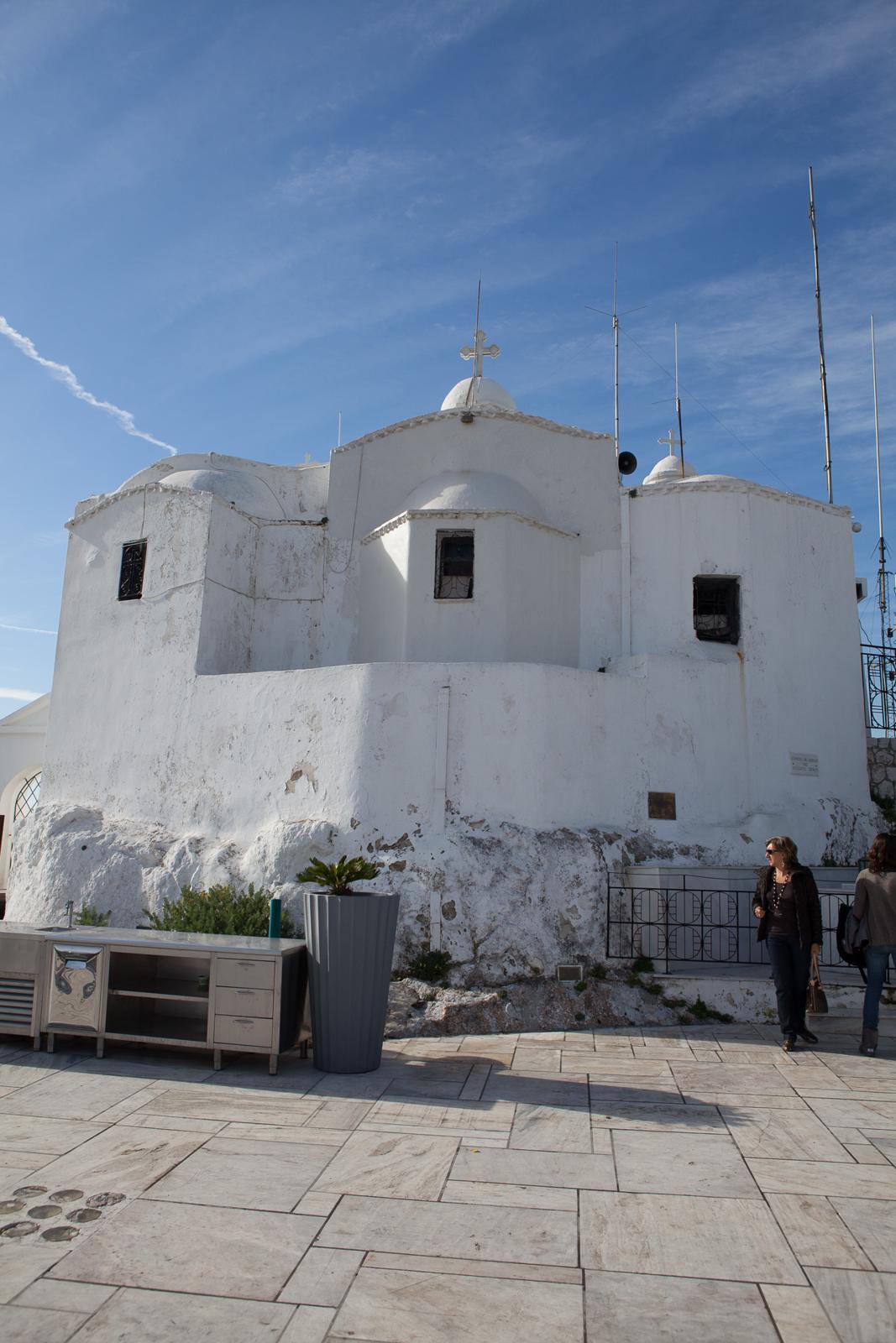 Athens Hilltop Chapel with Visitors Athens, Greece