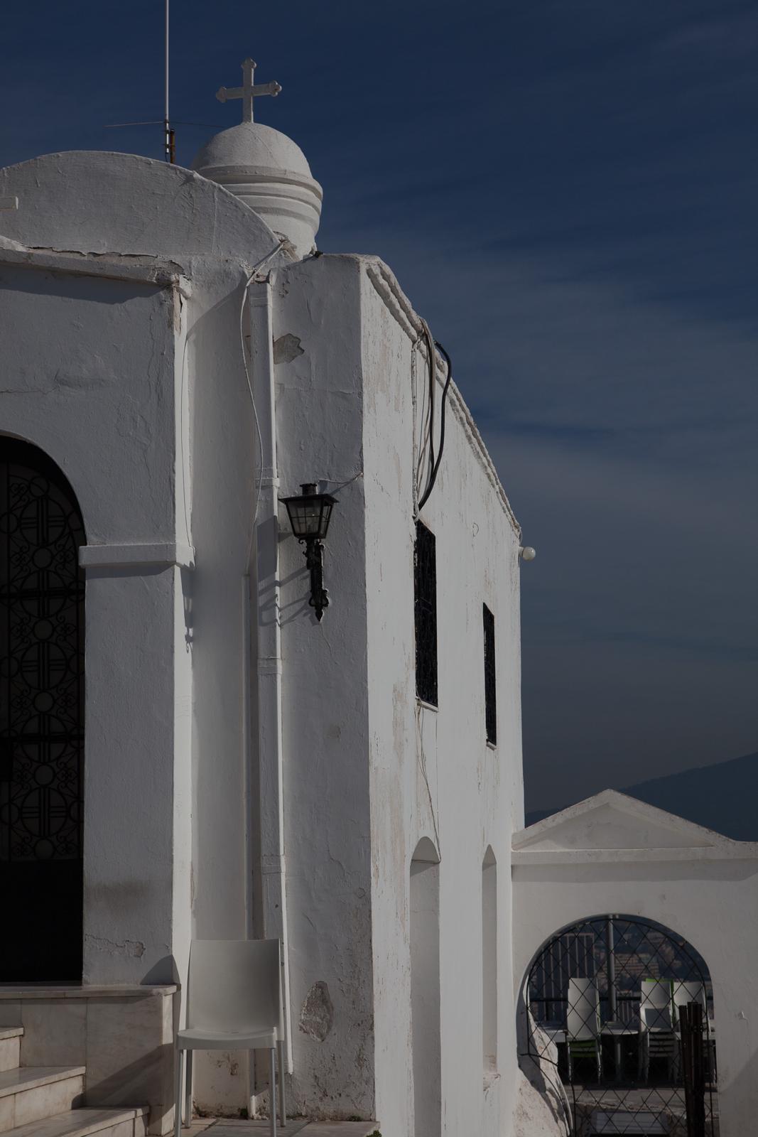 White chapel in Athens under a blue sky Athens, Greece