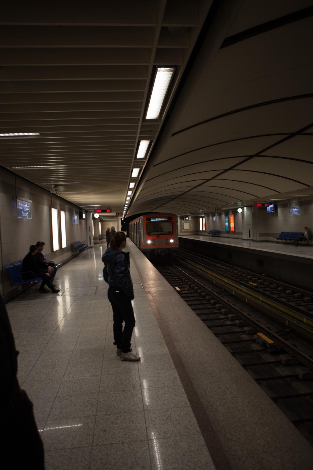 Athens Metro Platform with Orange Train Athens, Greece