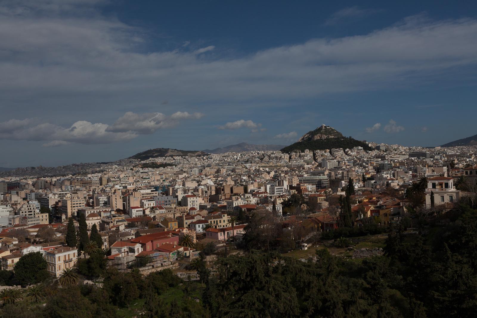Athens Cityscape with Lycabettus Hill under a Clear Sky Athens, Greece