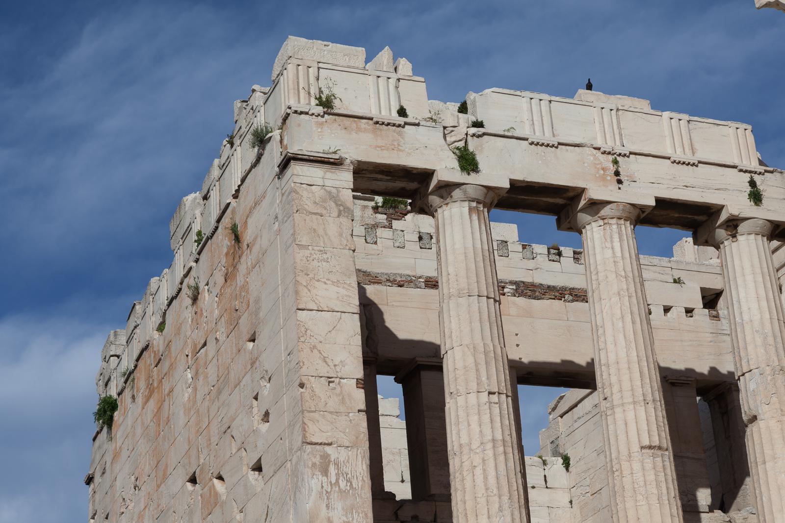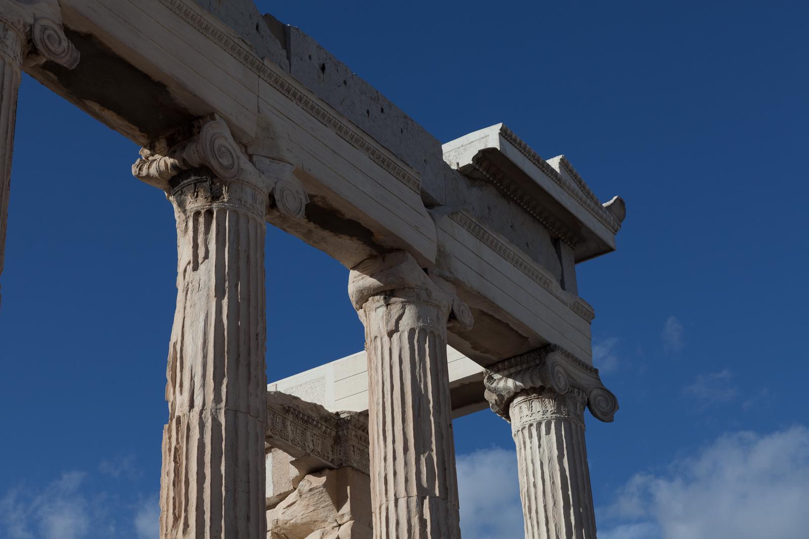 Ancient Greek Temple Columns under a Blue Sky Athens, Greece