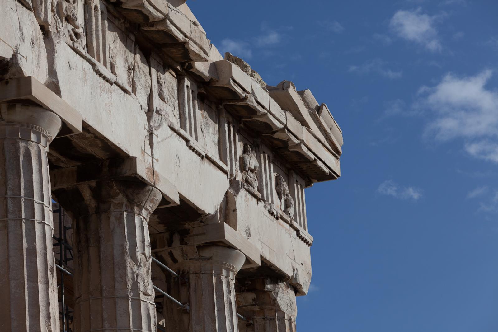 Close-up of a Classical Greek Temple Cornice in Athens Athens, Greece