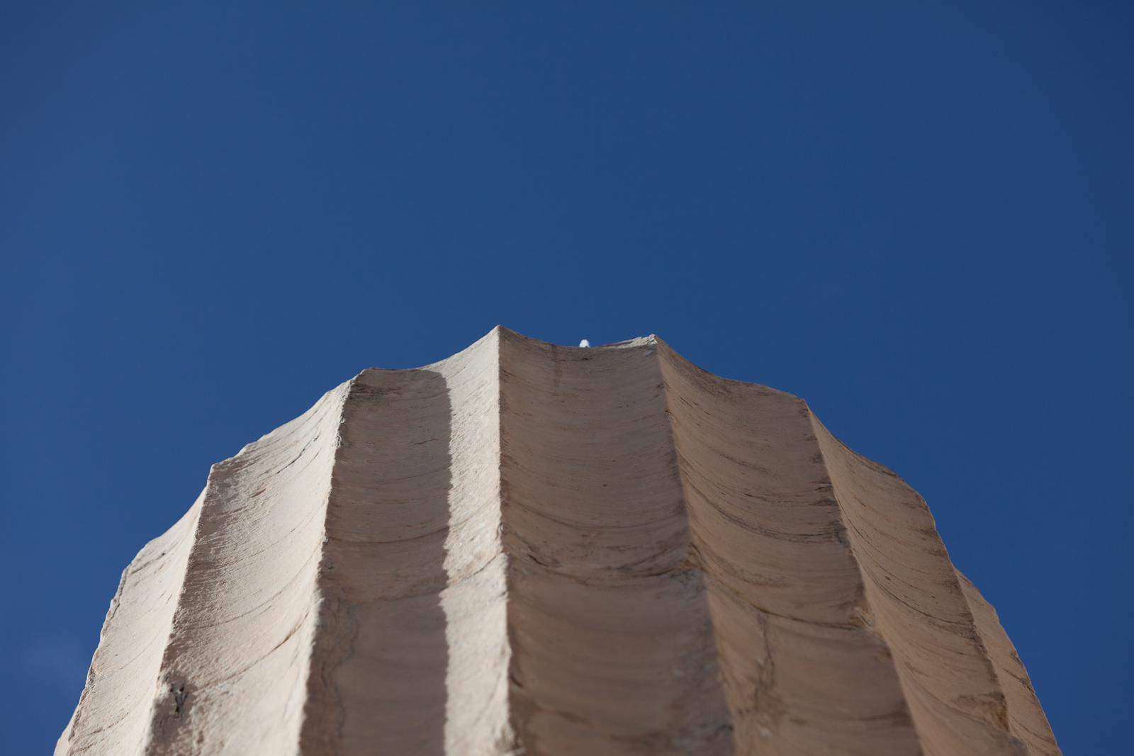 Close-up of a textured stone pinnacle against a blue sky Athens, Greece