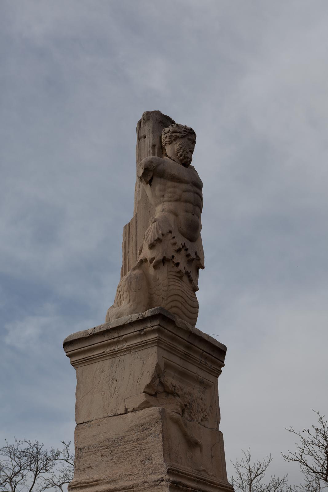 Ancient Merman Statue on a Pedestal in Athens Athens, Greece
