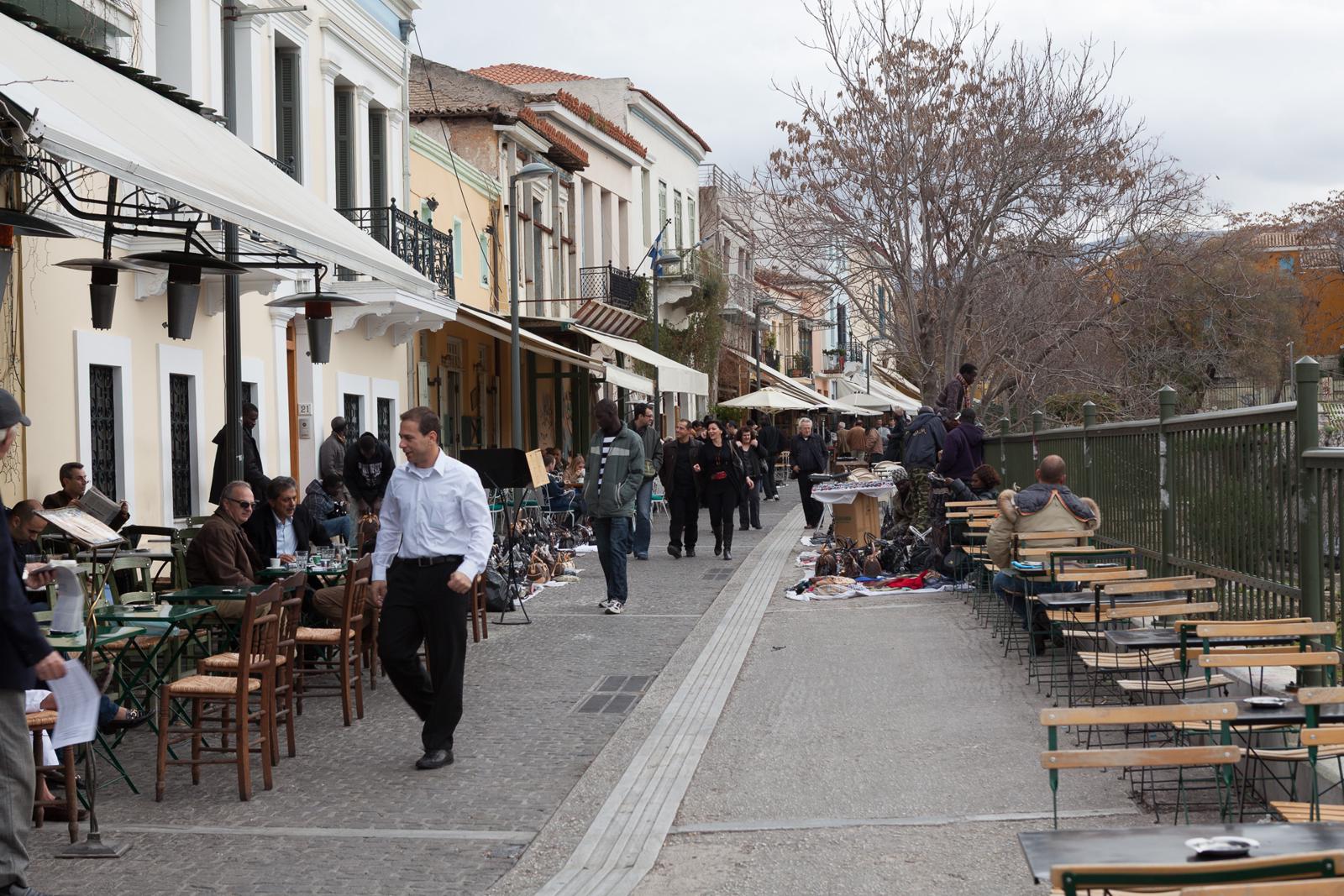 Outdoor Café Scene on a Athens Street (January 2010) Athens, Greece