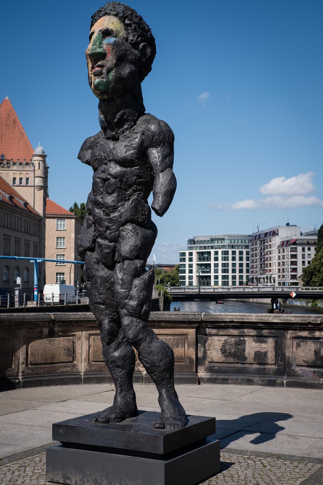 Contemporary Painted-Face Bronze Sculpture by the Spree, Berlin Berlin, Germany
