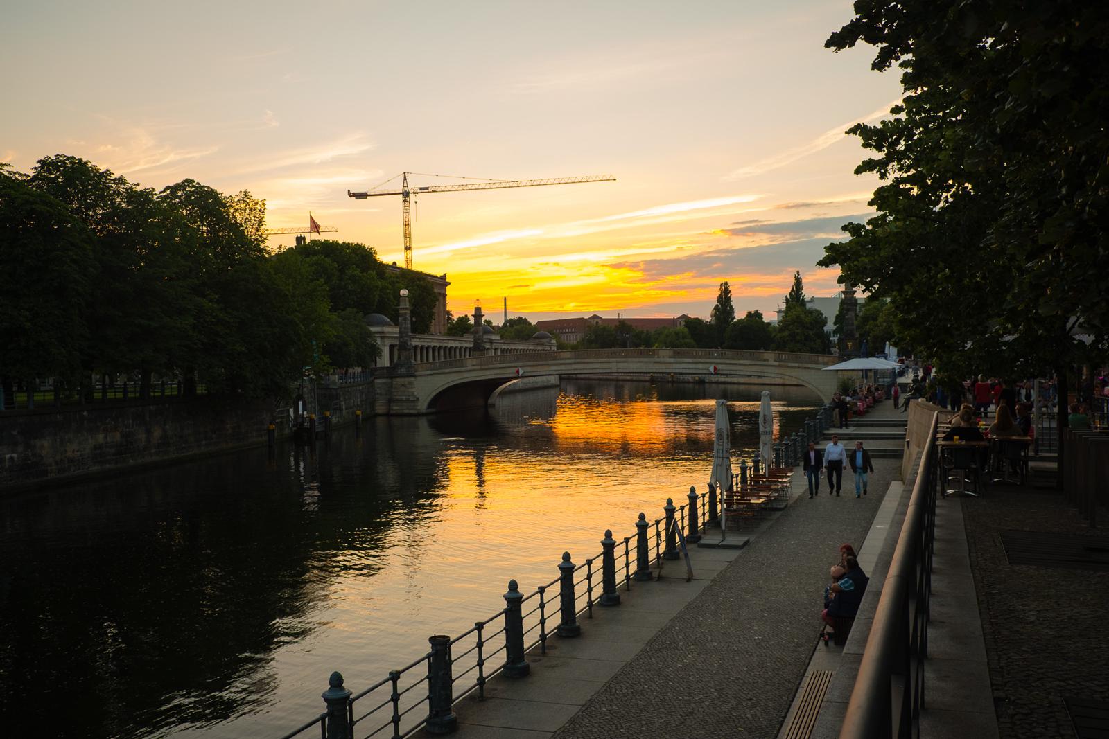 Sunset over the Spree River promenade in Berlin Berlin, Germany