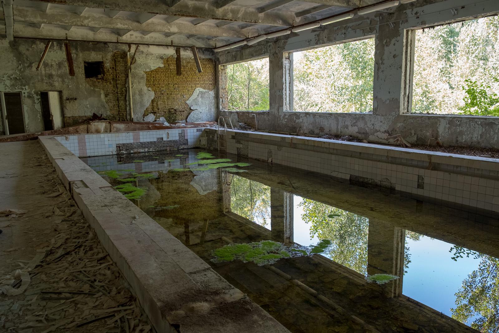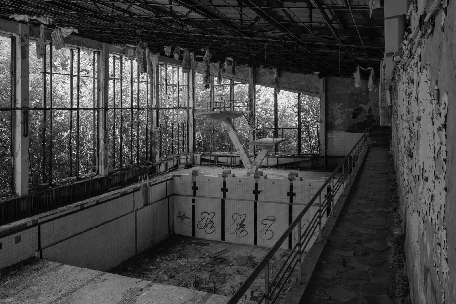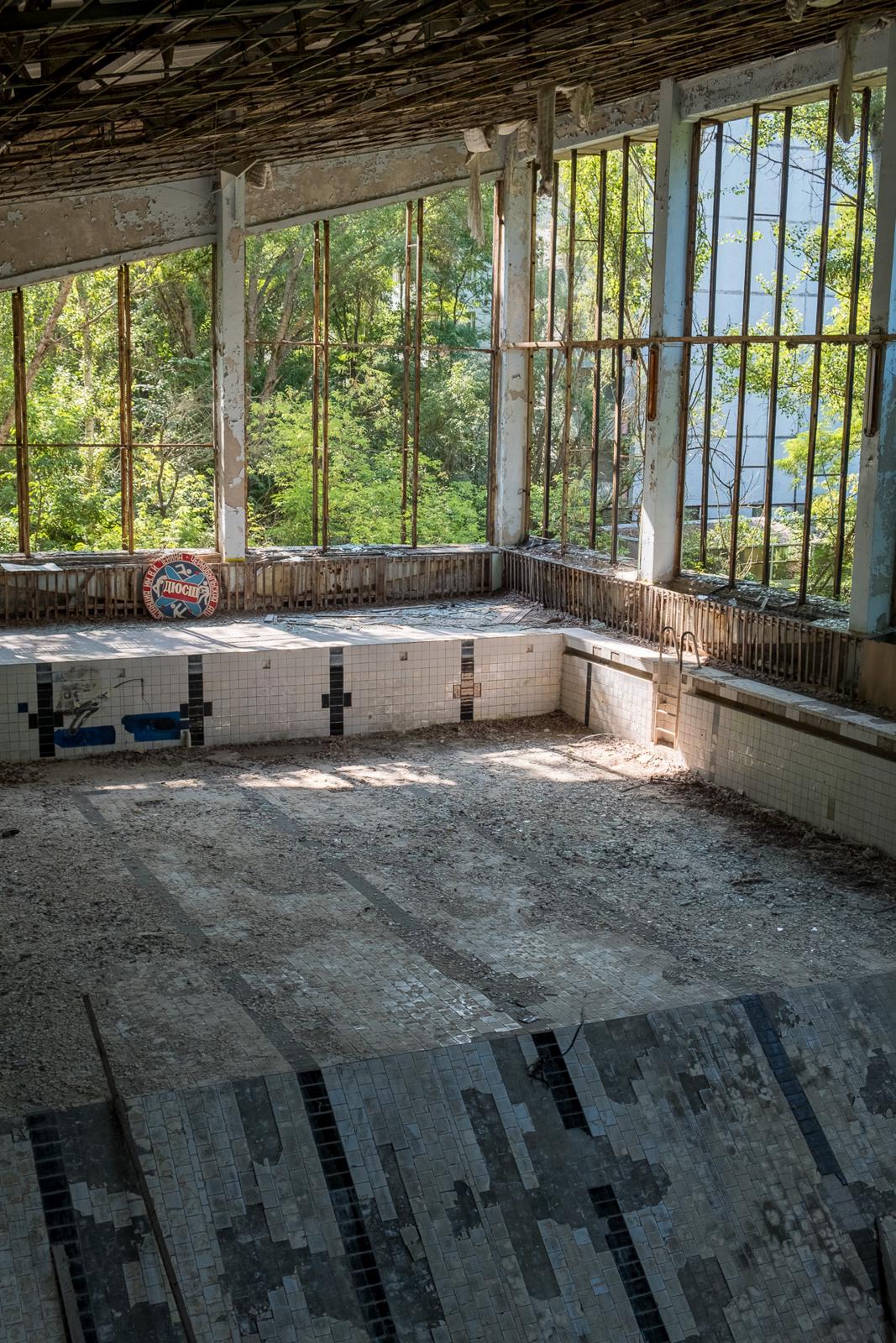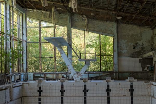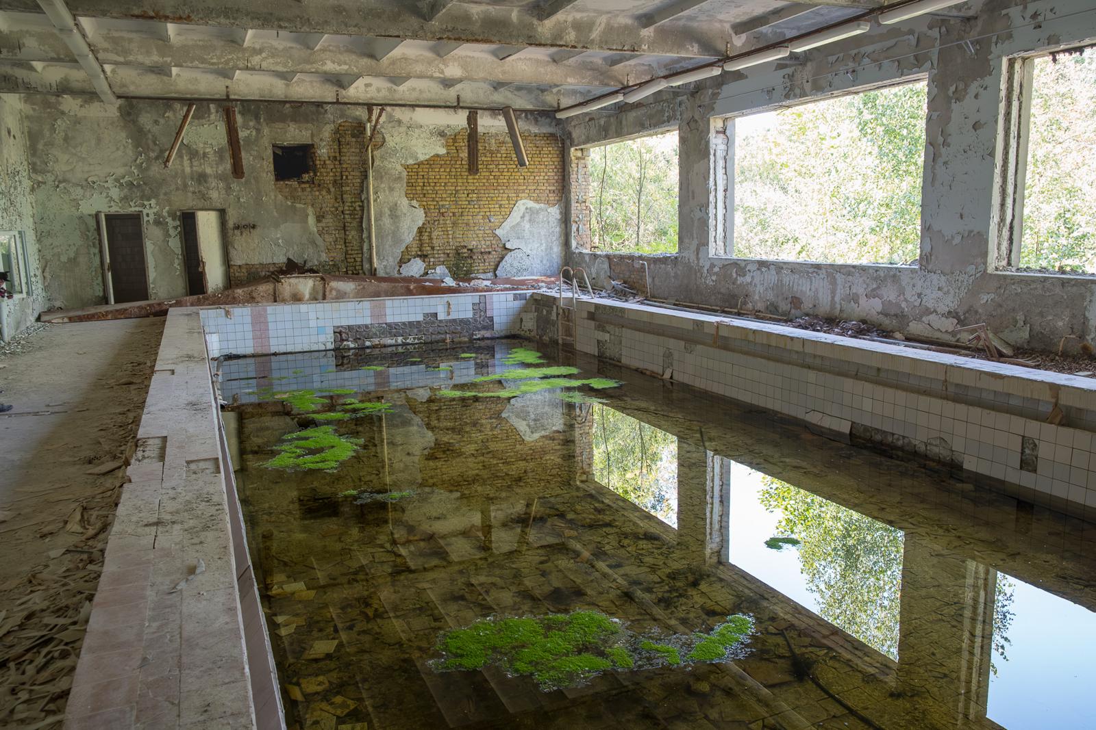 Abandoned indoor swimming pool shrouded in decay Prypiat, Ukraine