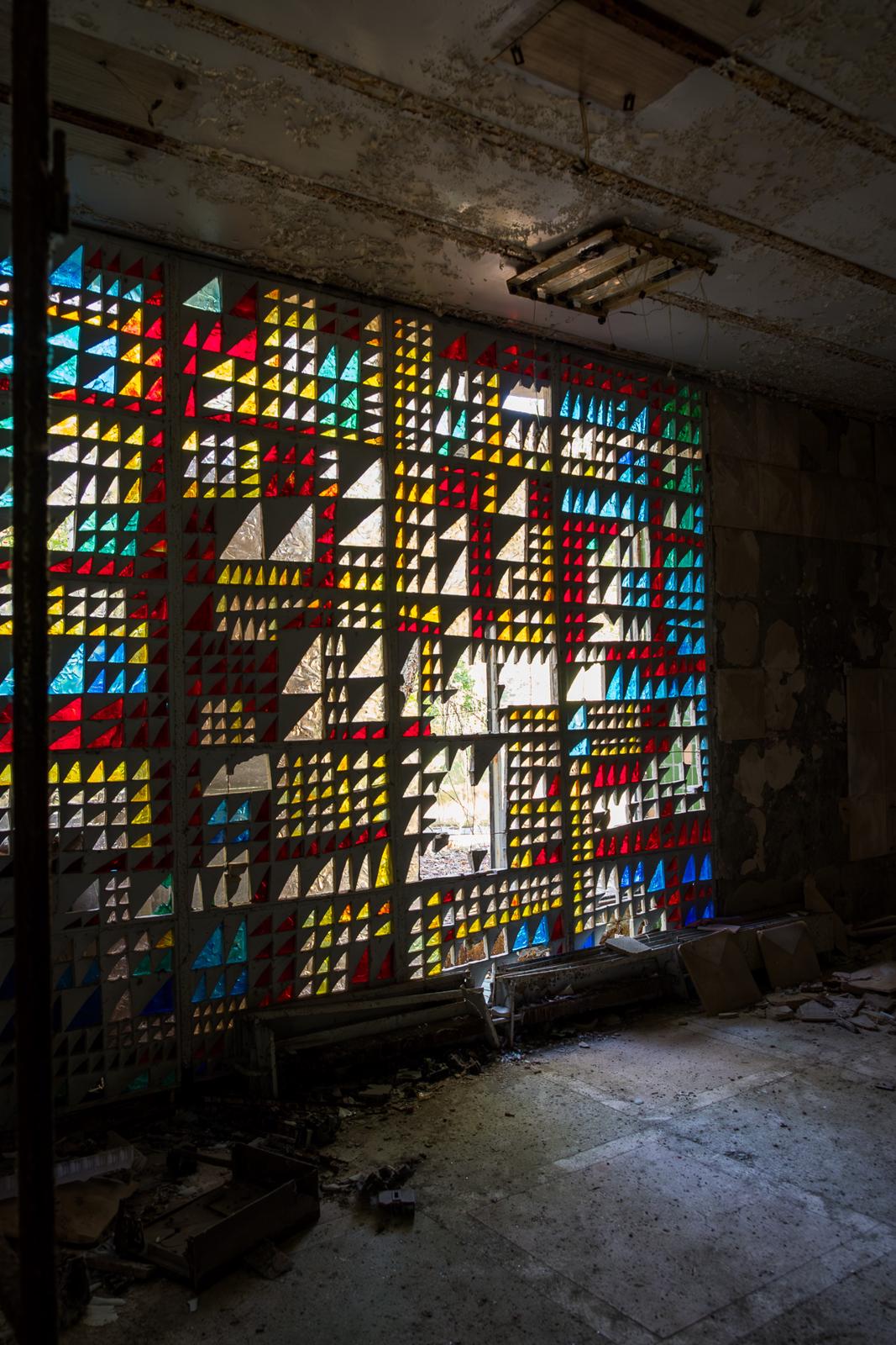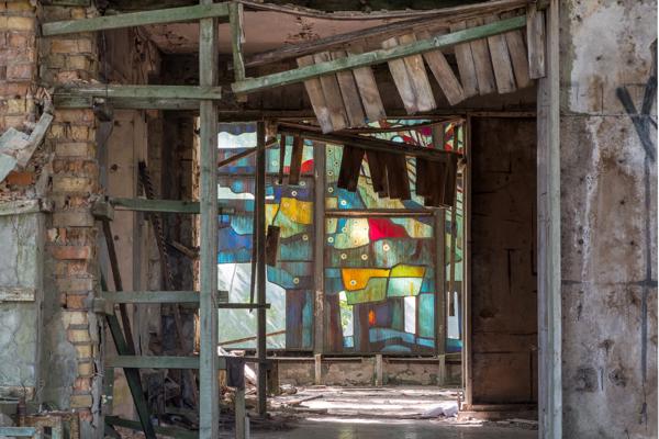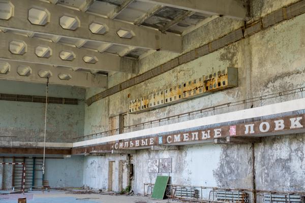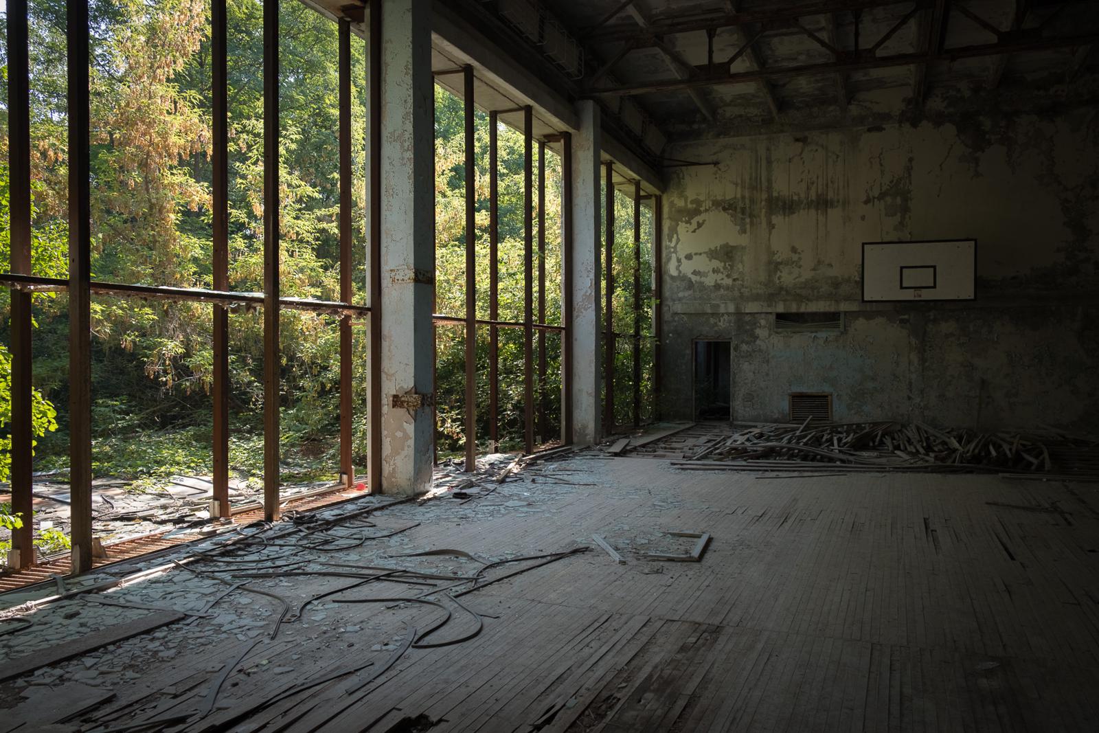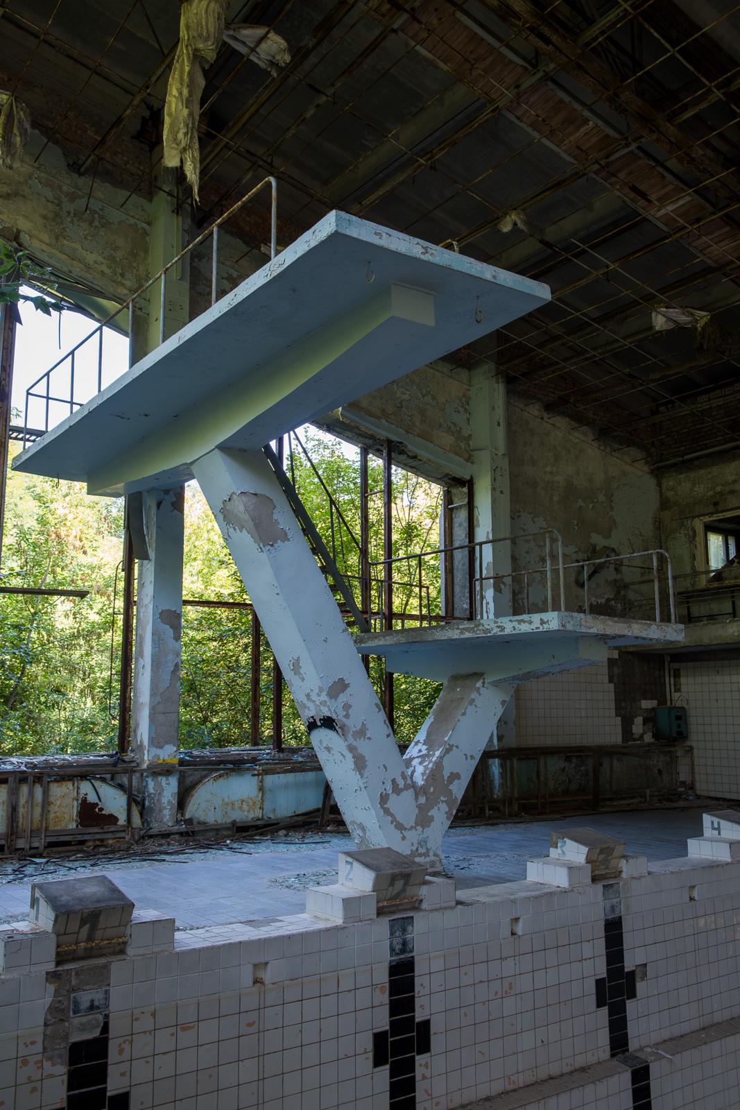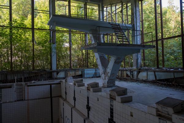 Abandoned indoor swimming pool shrouded in decay Prypiat, Ukraine